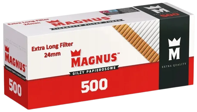 Цигарні гільзи Magnus Extra Long Filter 500 шт — від польського виробника, виготовлені з високоякісних компонентів і мають подовжений розмір фільтра 24 мм.